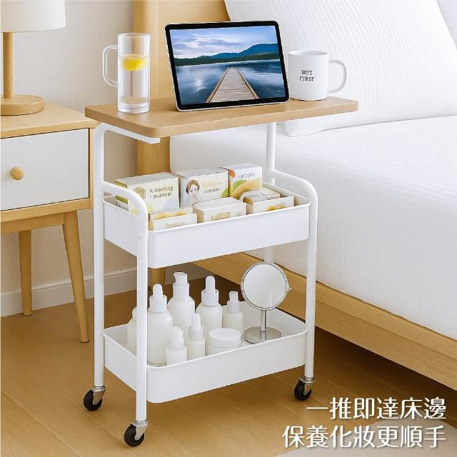 ANDYMAY2買一送一 小巴登鐵製收納架木桌板置物推車 電腦桌/三層收納 (收納架 置物櫃 桌板推車 收納籃 手推車)