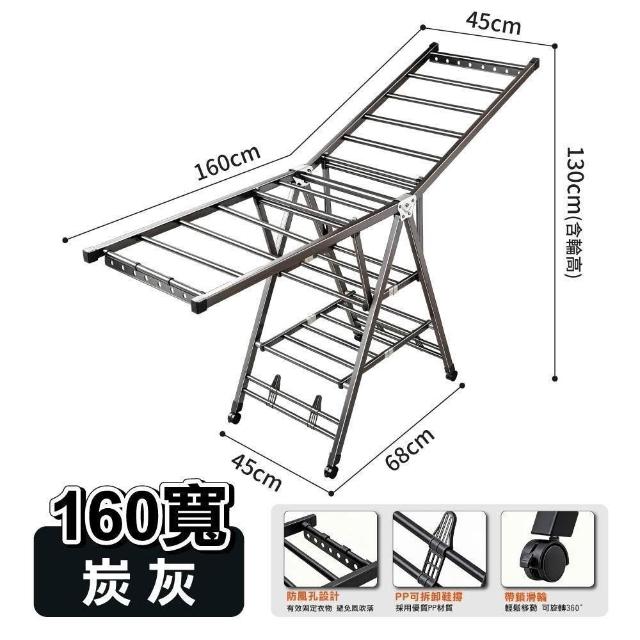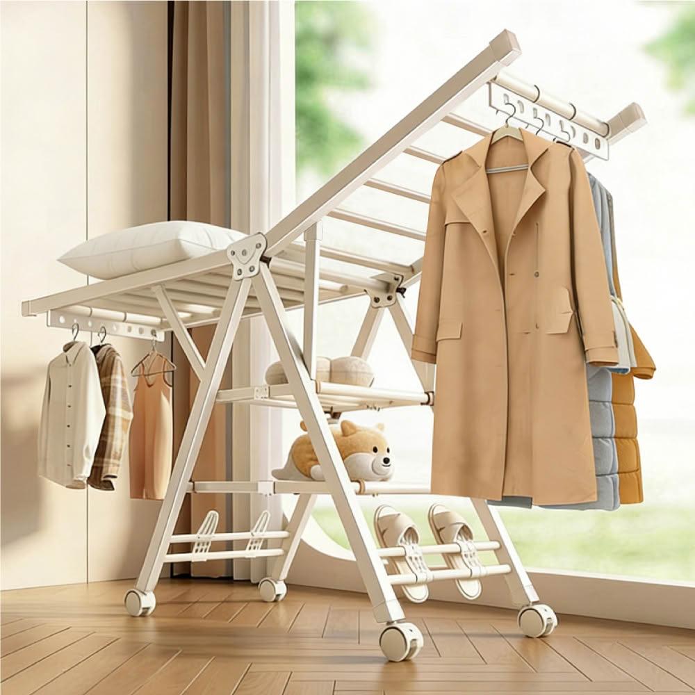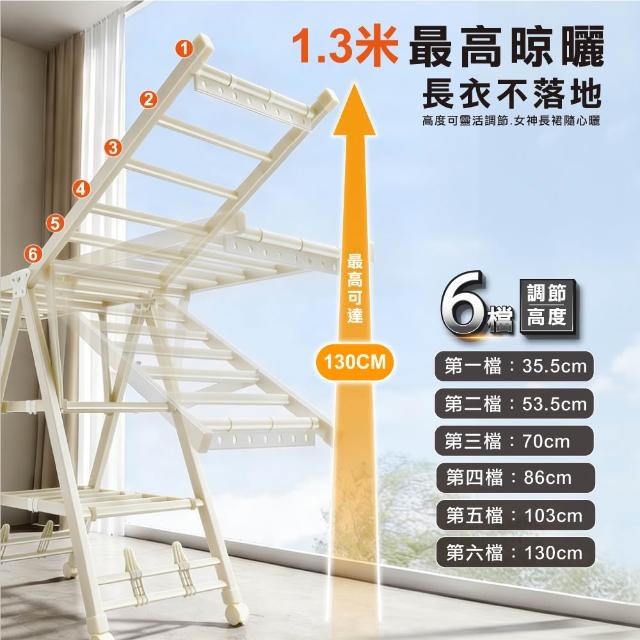 ANDYMAY2艾加蝶翼型加大三層折疊附輪曬衣架(晾衣架 曬衣架 衣架 曬衣桿 伸縮晾衣架 掛衣架)