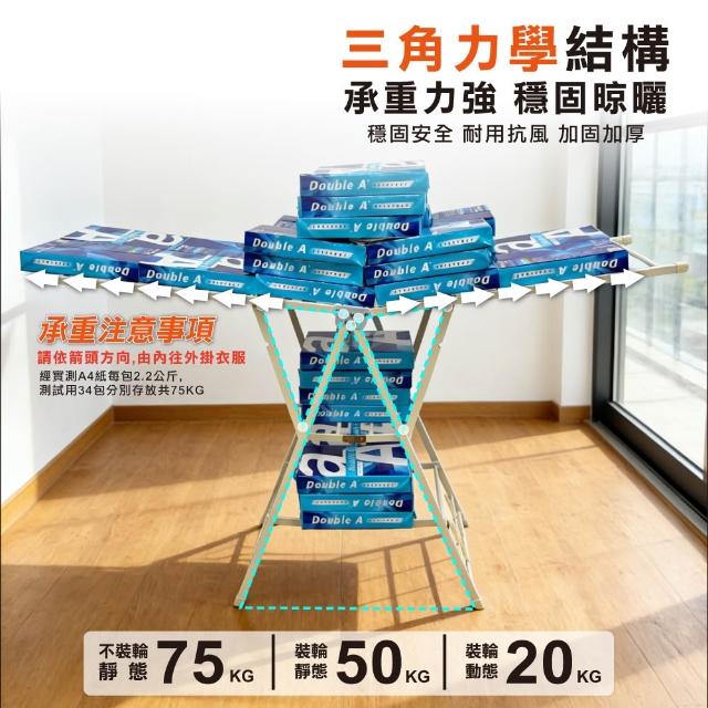 ANDYMAY2艾加蝶翼型加大三層折疊附輪曬衣架(晾衣架 曬衣架 衣架 曬衣桿 伸縮晾衣架 掛衣架)