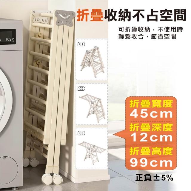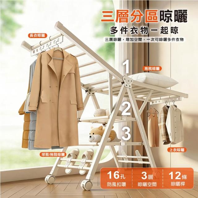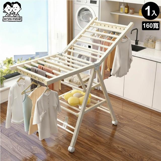 ANDYMAY2艾加蝶翼型加大三層折疊附輪曬衣架(晾衣架 曬衣架 衣架 曬衣桿 伸縮晾衣架 掛衣架)