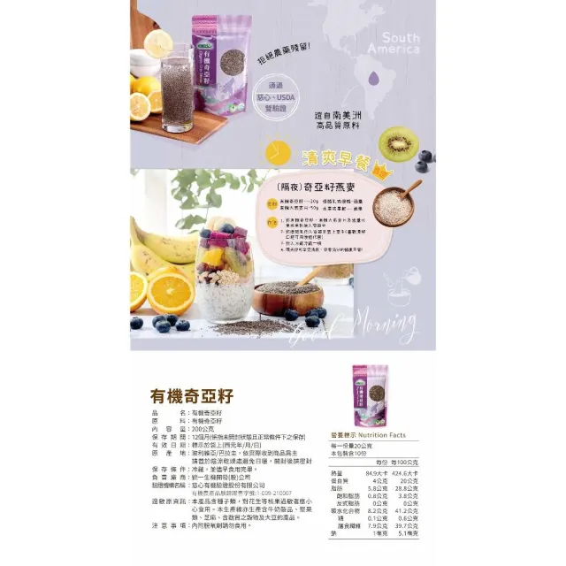 統一生機 有機奇亞籽 200g/包
