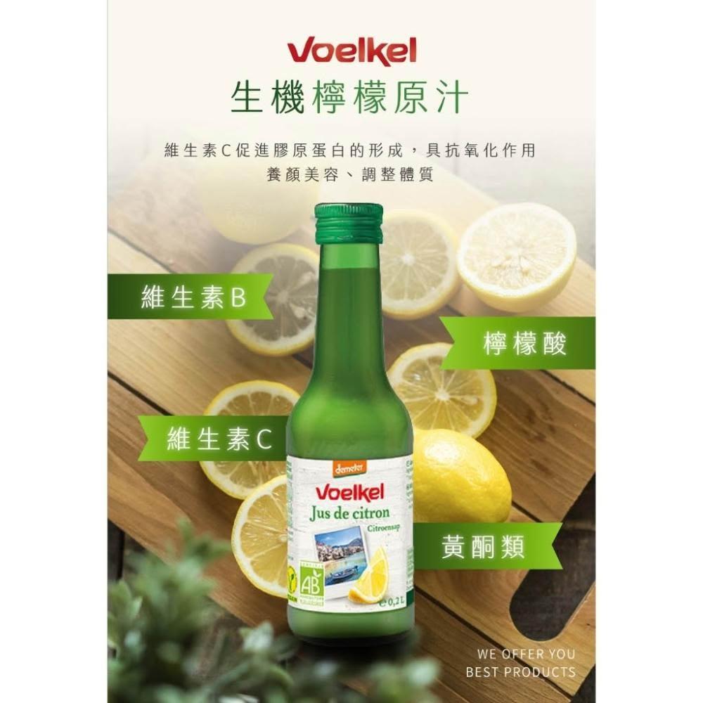 德國生機 Voelkel100% 檸檬原汁 檸檬汁200mL 高量維生素B 維生素C 養顏美容 檸檬酸
