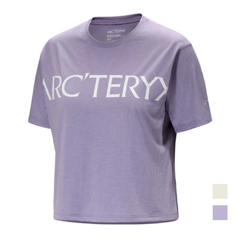 Arcteryx 始祖鳥女 Taema Crop Word 快乾短袖圓領衫 絹絲雜白 藍香雜紫(X000007695)