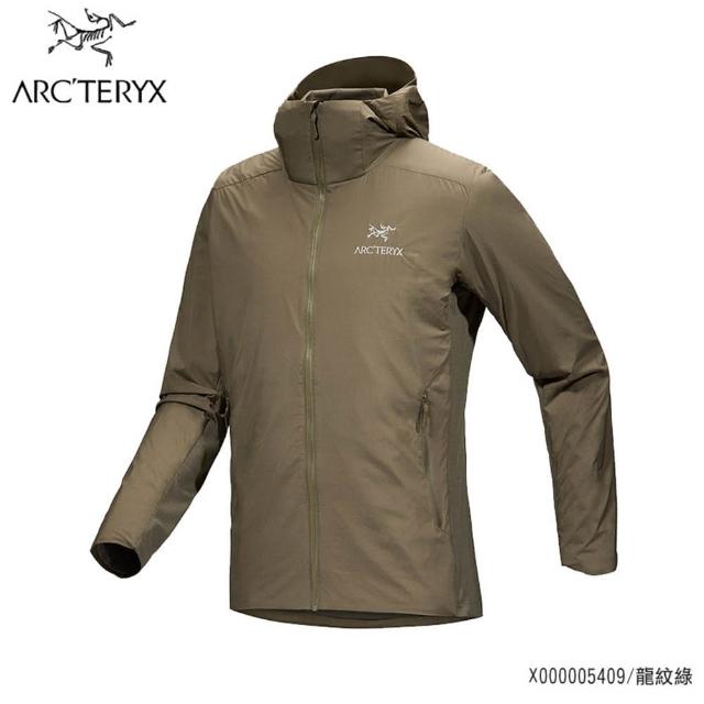 Arcteryx 始祖鳥男 Atom SL 化纖外套 黑 龍紋綠 輕量Coreloft連帽外套(X000005409)