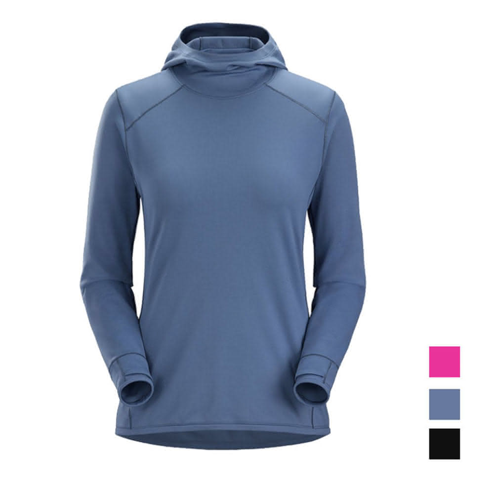 Arcteryx 始祖鳥女 Motus Hoody 套頭衫 月光藍 黑 鐵克諾紅 長袖帽T 連帽套頭衣(30100)