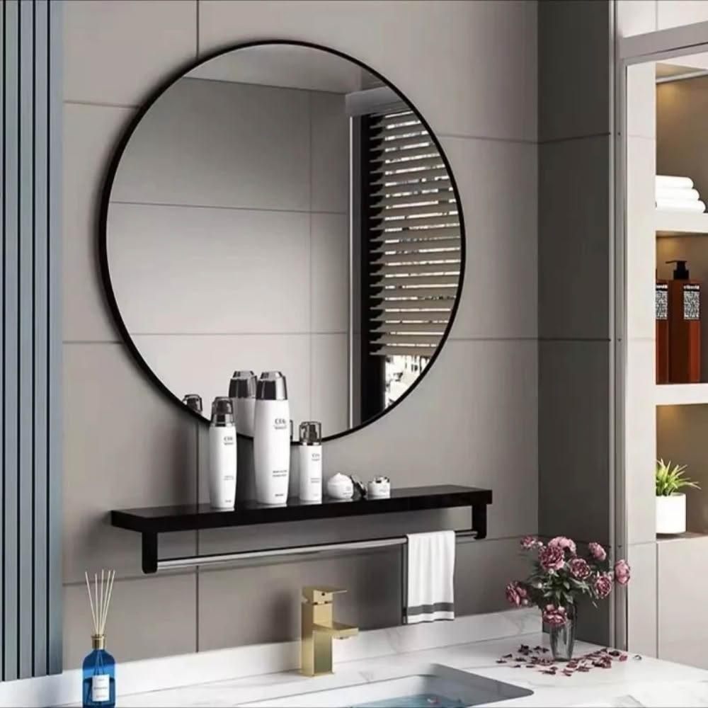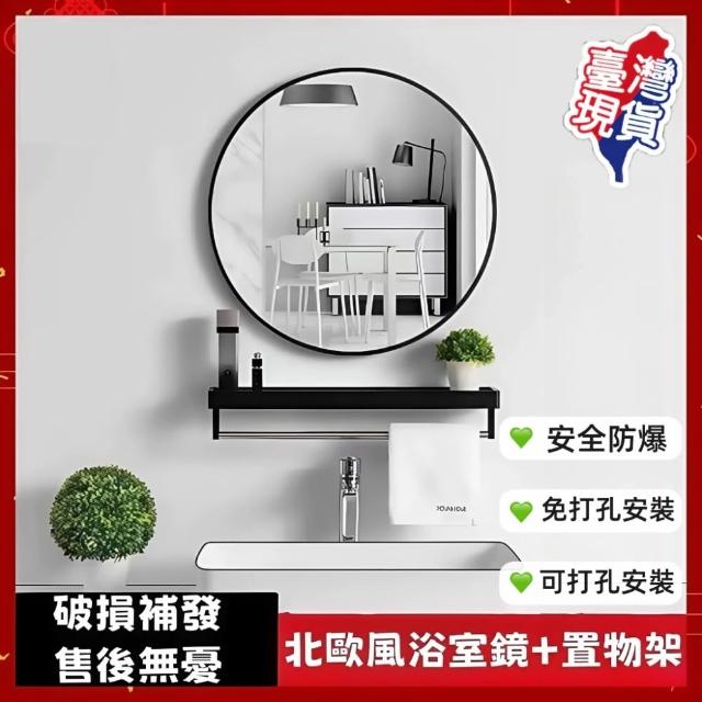 免打孔高清圓鏡+同尺寸置物架