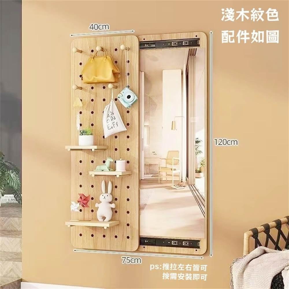 隱形穿衣鏡 洞洞板全身鏡40*120公分實木 可關閉隱藏推拉鏡子 掛牆 穿衣可遮擋隱形壁掛式玄關 試衣鏡