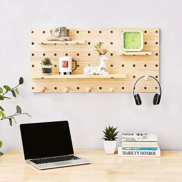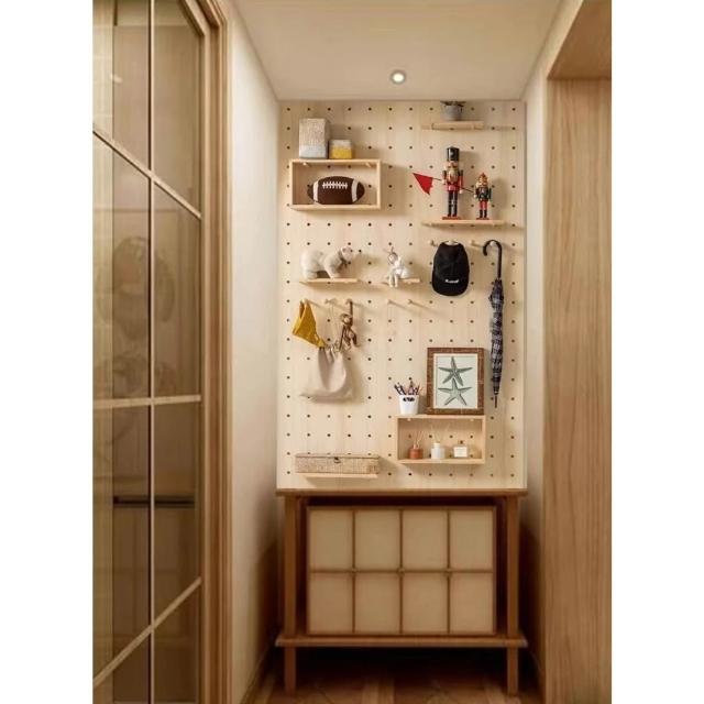 木洞洞板 【台灣出貨實木洞洞板 可免釘安裝 電箱裝飾 洞洞置物架板 創意木質洞洞板 洞洞板 牆上裝飾收納架