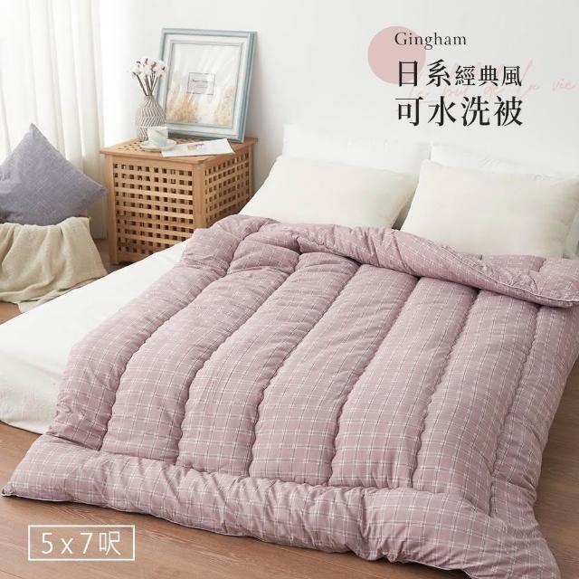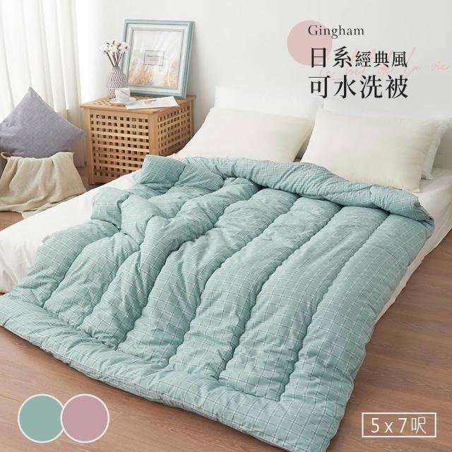 沐眠生活家日系小清新 可水洗羽絲絨被-150x200cm經典格紋 棉被 冬被 厚被 冷氣被