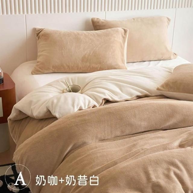沐眠生活家熱銷👍 極暖牛奶絨 雙人加大床包被套4件組 多款任選 床包加高35cm 保暖抗靜電 拼色系列
