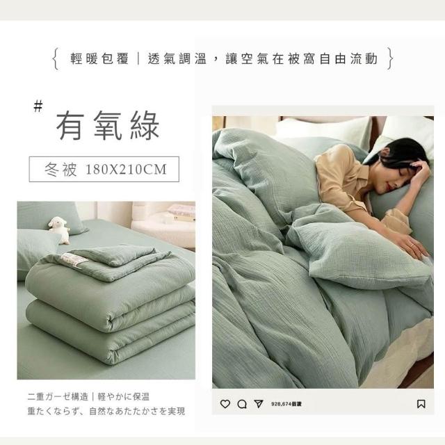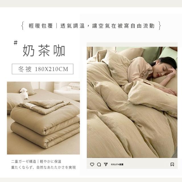 沐眠生活家純棉二重紗厚鋪棉雙人保暖冬被-180x210cm 寒流必備 親膚舒適 輕盈保暖 可水洗 棉被 厚被