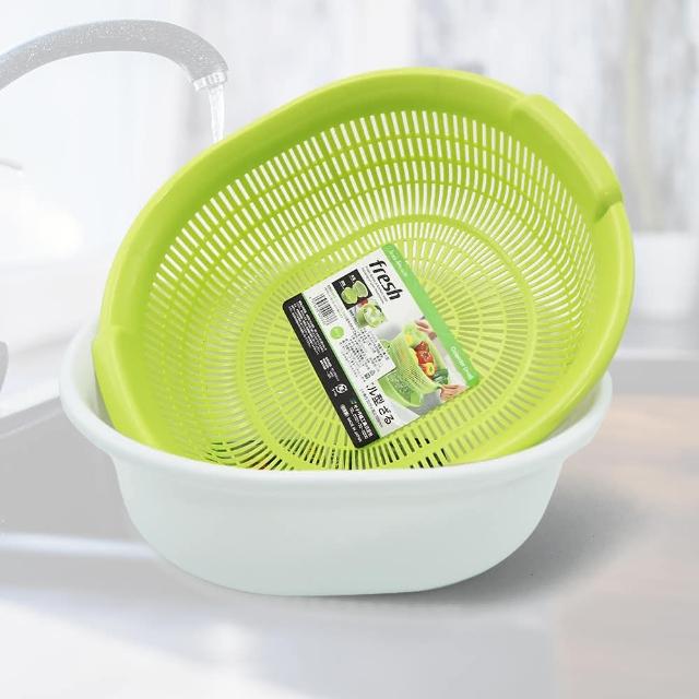 日本製橢圓形洗菜盆x2入+濾水籃x2入(洗菜盆)