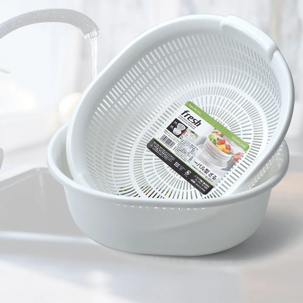 日本製橢圓形洗菜盆x2入+濾水籃x2入(洗菜盆)