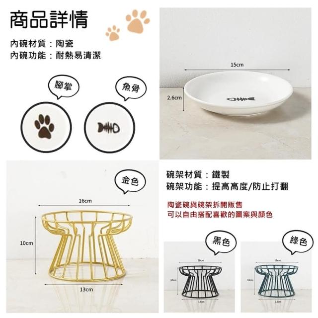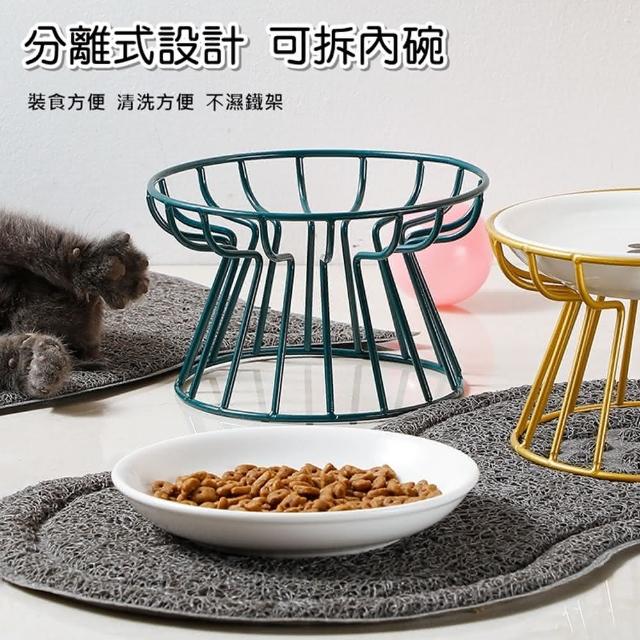 寵物淺盤陶瓷鐵架高腳碗狗碗 貓咪碗 寵物碗架 寵物餵食器 飼料碗 寵物陶瓷碗 水碗 高腳碗 高腳寵物碗