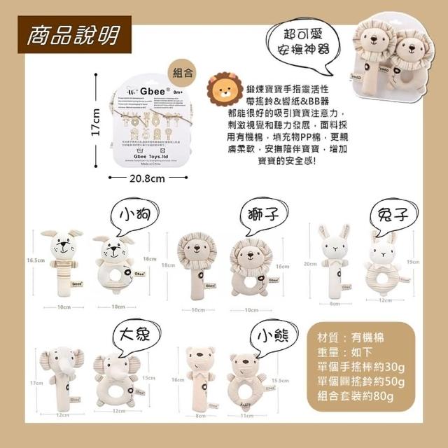 寶寶動物手搖鈴嬰兒玩具 嬰兒手搖鈴 手搖鈴 按撫娃娃 Gbee棉圓手搖鈴棒 寶寶安撫玩具