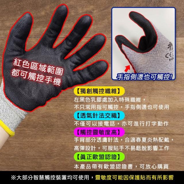 防滑防穿刺工作手套 3雙一組-可觸控手機(歐盟認證)