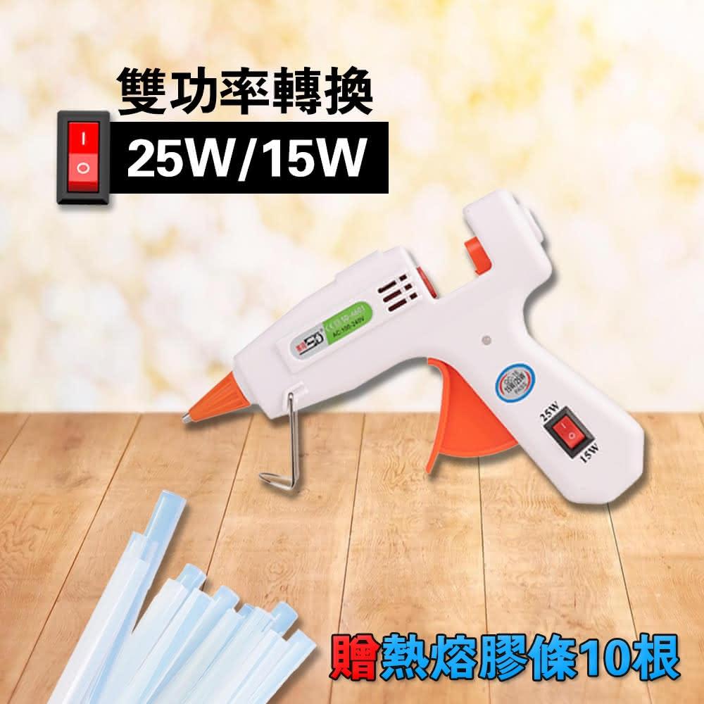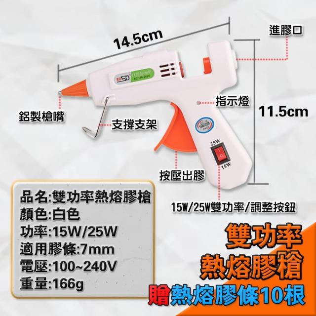 熱熔膠槍組 雙功率調整白色贈10支熱熔膠條(DIY 手作 黏膠 黏紙 工程 居家用品)