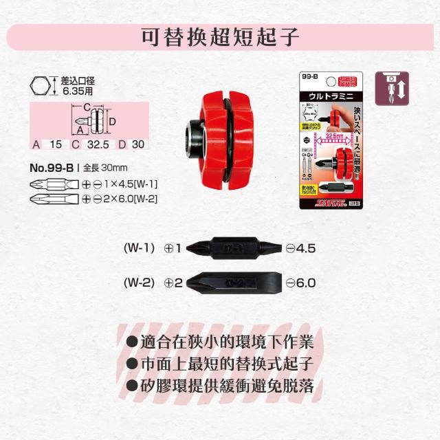 - 起子頭帶磁性,側邊凹槽可輕鬆抓
