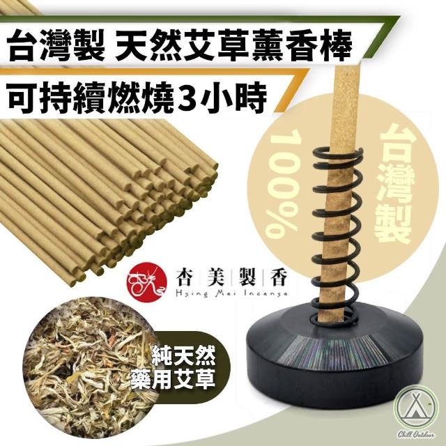 Chill Outdoor台灣製 杏美天然艾草薰香棒+底座(立式) 長效燃燒3小時蚊香 驅蠅神器 驅蚊器 驅趕蒼蠅