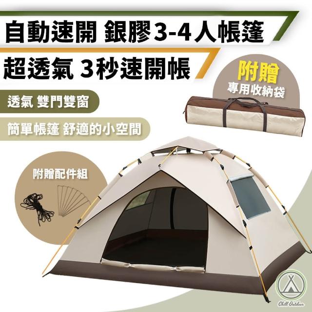 Chill Outdoor兩門款 全自動秒開帳篷 3-4人 銀膠防曬帳篷 露營帳篷 拋帳 野餐帳篷 遮陽帳篷 秒開帳