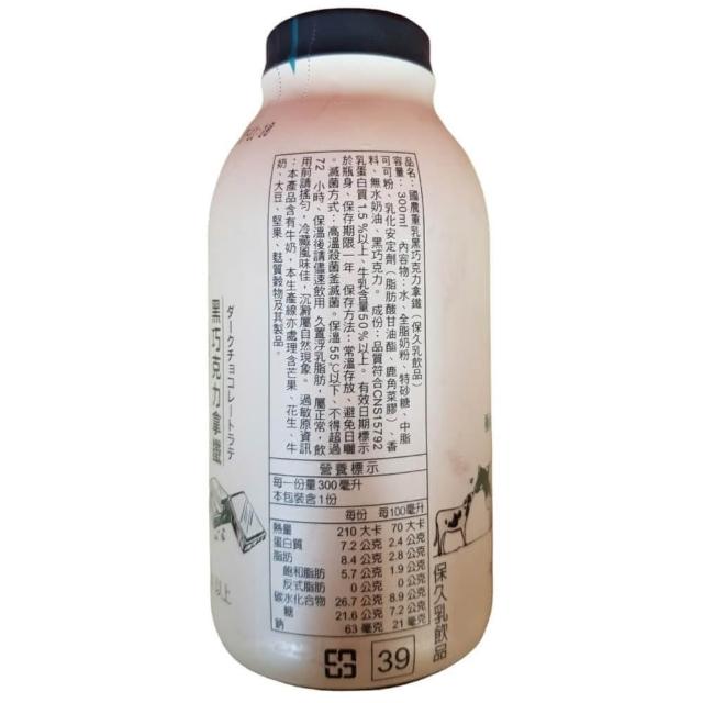 國農國農重乳 黑巧克力拿鐵 300ML X 24瓶(玻璃瓶包裝)
