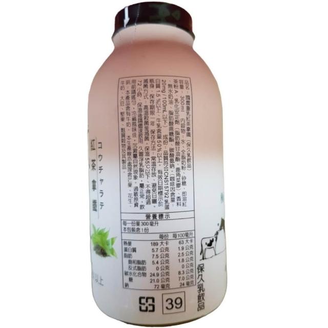 國農國農重乳 紅茶拿鐵 300ML X 24瓶(玻璃瓶包裝)