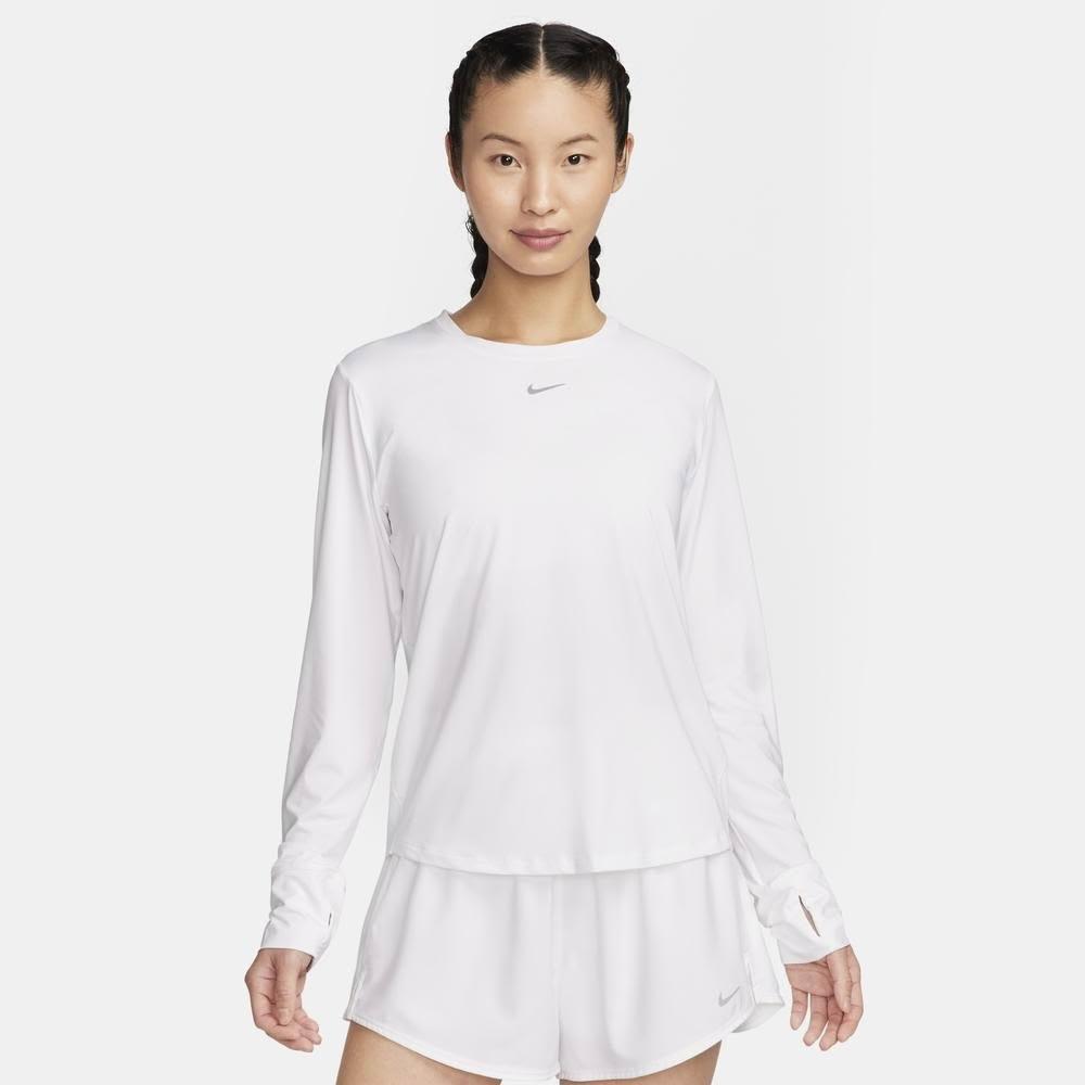 NIKE 耐吉Homieee Nike 純色logo反光設計圓領速幹長袖 落肩袖T恤 女款 白色 FN2802-100