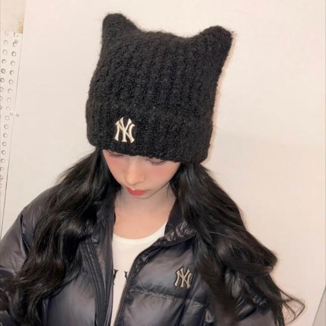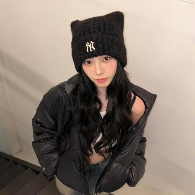 MLB Beanie 毛帽 貓耳 KARINA 劉知珉 韓國 黑色 米白