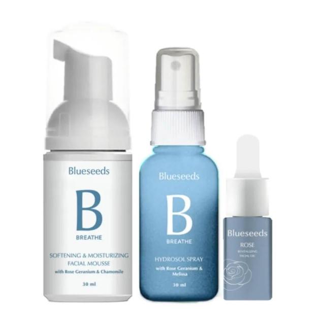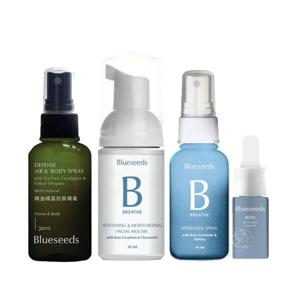 Blueseeds 芙彤園玫瑰煥顏隨身保養組+防禦防蚊精油噴霧|潔顏慕斯 噴霧 精油露|旅行組