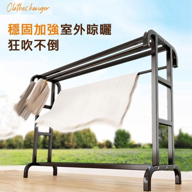 JU JIA JIA 居家家室內外雙排置物落地式加粗加厚可移動曬衣架(晾衣架/晾衣桿/掛衣架/衣帽架/置物架)