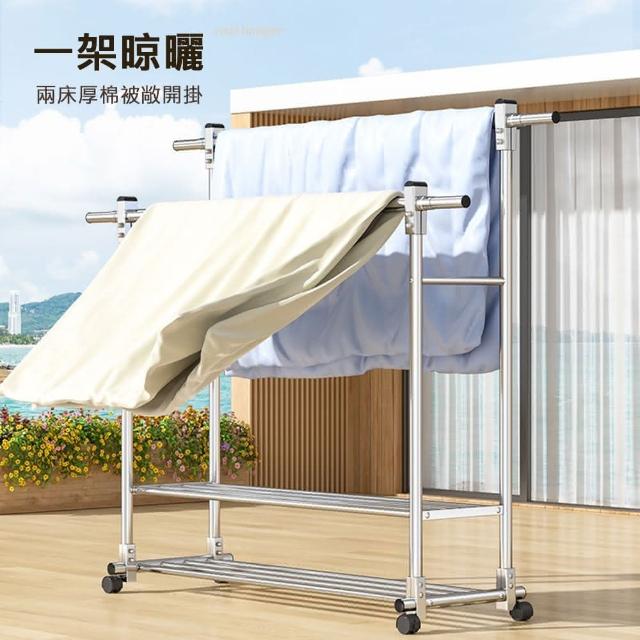 JU JIA JIA 居家家家用可移動伸縮不鏽鋼加粗加厚雙桿雙層晾衣架(曬衣架/掛衣架/曬被架/置物架/收納架)