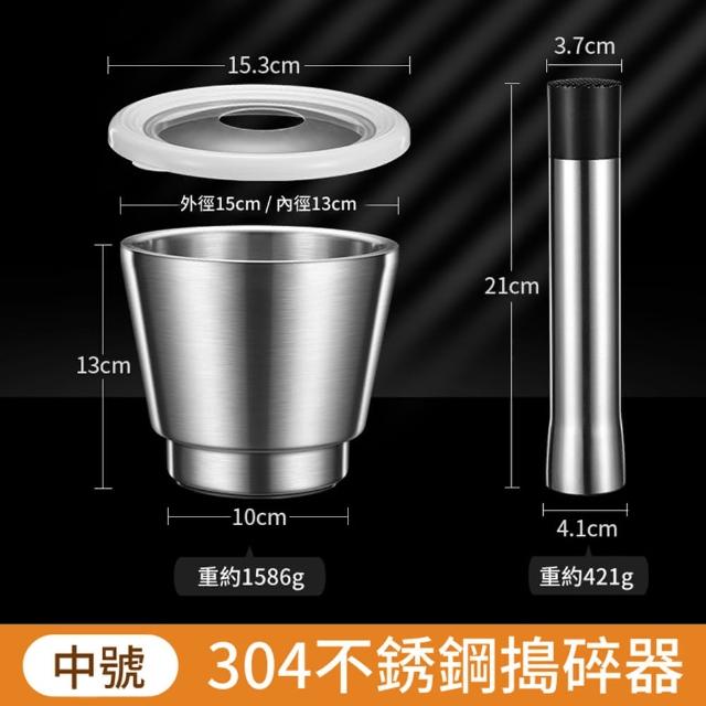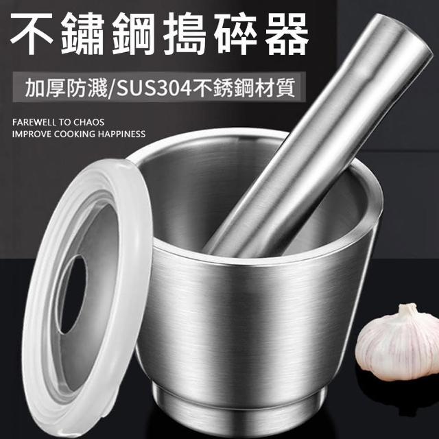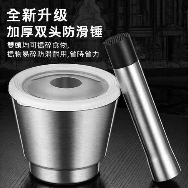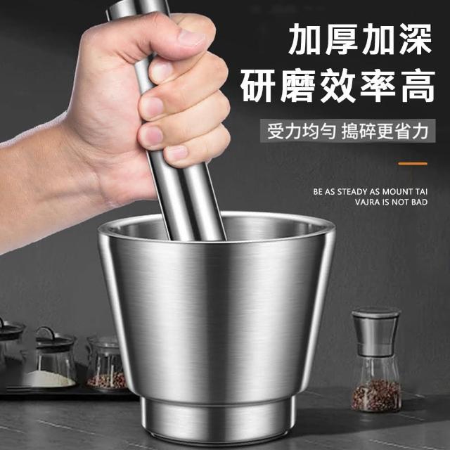 JU JIA JIA 居家家304不鏽鋼加厚加深底部防滑研磨搗藥中號搗碎器(搗藥碗/搗蒜器/擂钵石/蒜臼子/藥杵)