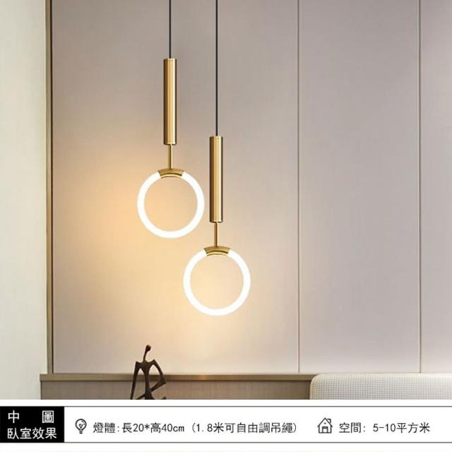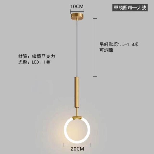 YIZ TIME 北歐極簡床頭臥室單頭大號led三色變光14W圓環吊燈(床頭燈/吊線燈/氛圍燈/閱讀燈/背景燈)