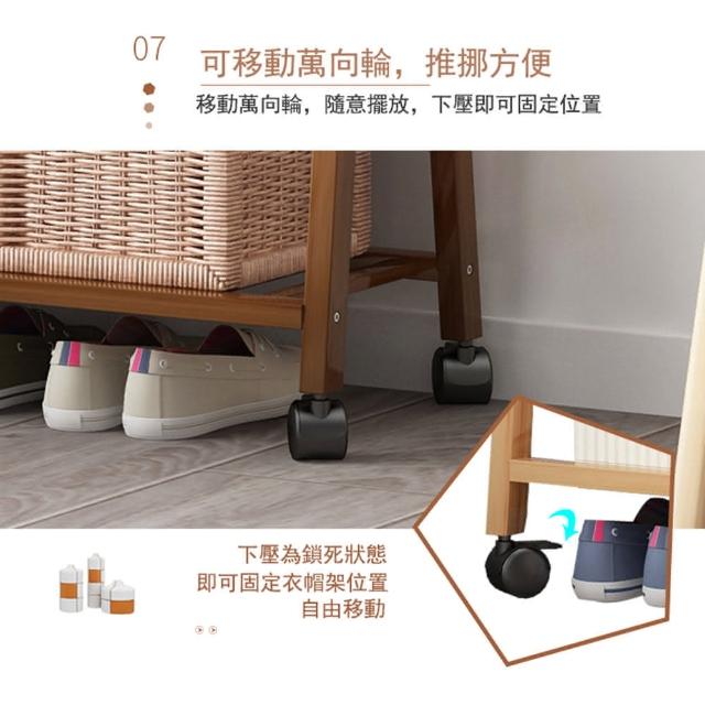 JU JIA JIA 居家家家用臥室實木一體式可移動落地雙層70CM掛衣架(置物架/收納架/衣帽架/衣架/晾衣架)
