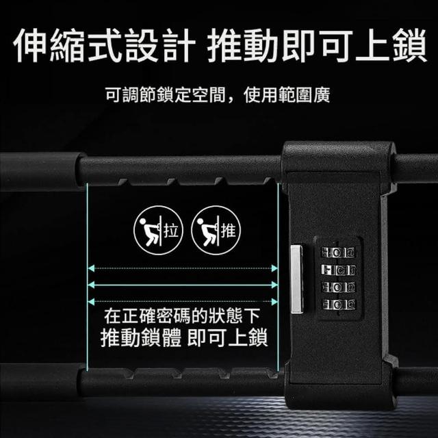 JU JIA JIA 居家家家用大門玻璃門防盜42CM加長可伸縮U型四輪密碼鎖(掛鎖/防盜鎖/U型鎖/門鎖/鎖頭)