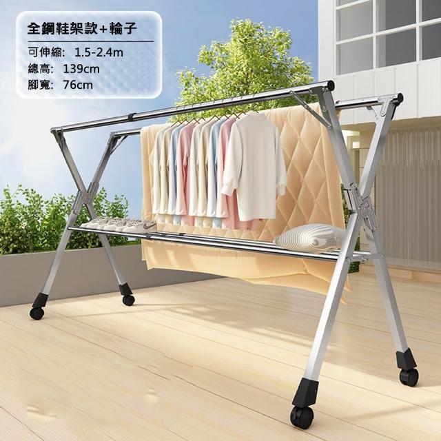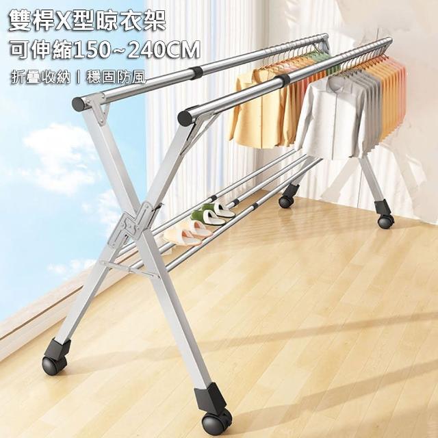 JU JIA JIA 居家家可伸縮移動150-240CM帶晾曬架X型落地折疊不鏽鋼晾衣架(曬衣架/晾衣桿/曬衣桿/掛衣架)