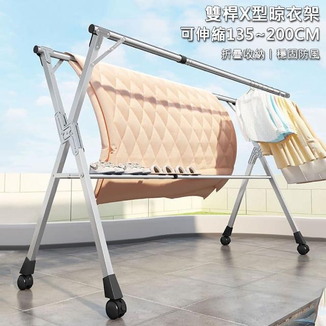X型晾曬衣架 帶滑輪輕鬆移動