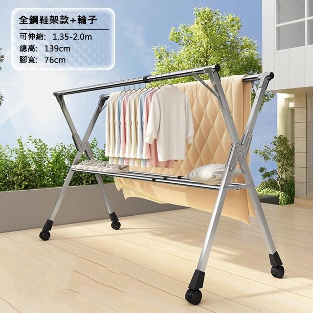 JU JIA JIA 居家家可伸縮移動135-200CM帶晾曬架X型落地折疊不鏽鋼晾衣架(曬衣架/晾衣桿/曬衣桿/掛衣架)