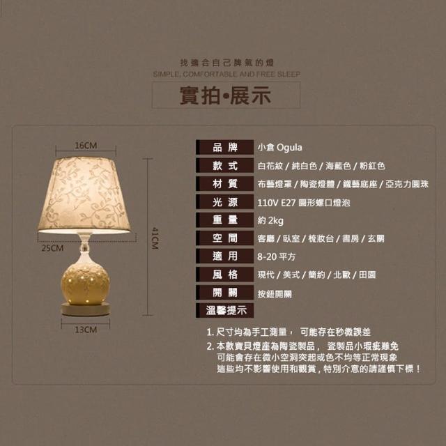 YIZ TIME 歐式時尚臥室書房客廳閱讀陶瓷床頭燈(小夜燈/檯燈/桌燈/閱讀燈)