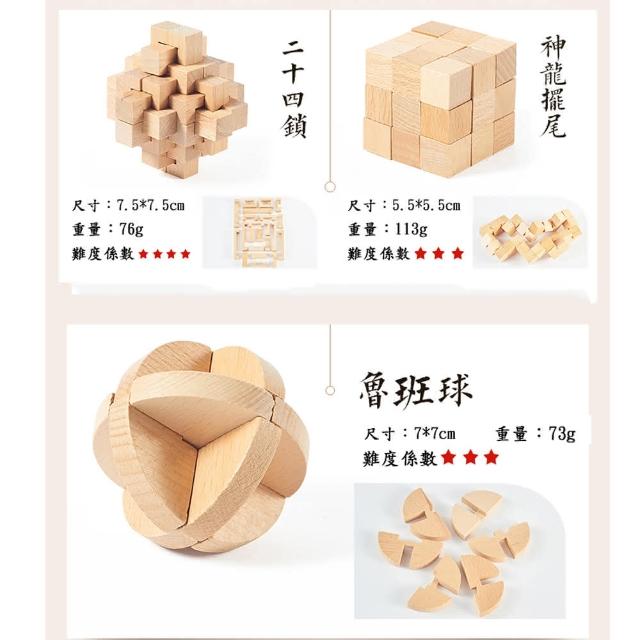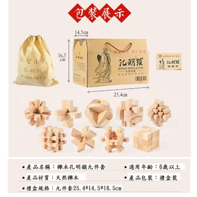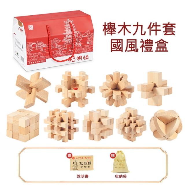 樂智由我 櫸木孔明鎖魯班鎖兒童成人益智智力燒腦榫卯休閑解鎖學生玩具(9件套/積木/益智玩具)