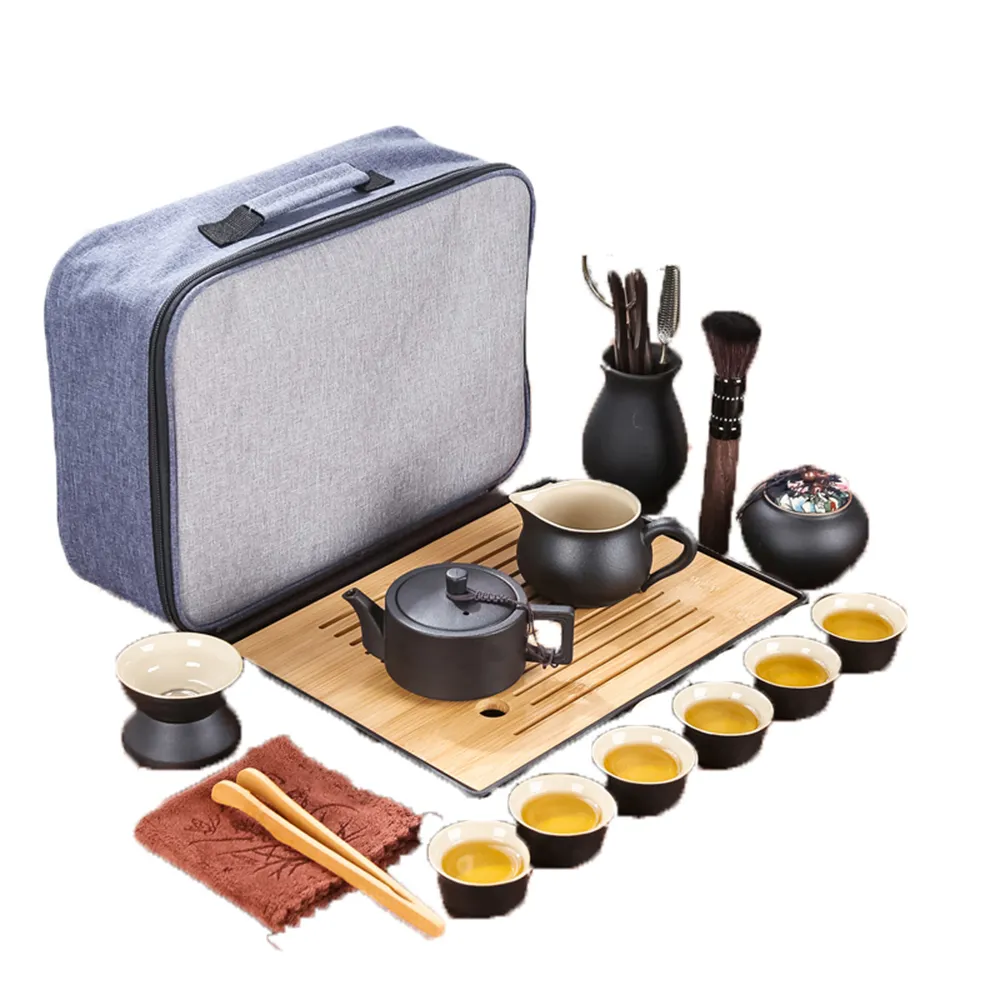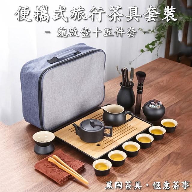新藝 辦公室戶外旅行便攜式陶瓷15件套功夫茶具組套裝(快客杯/泡茶壺/茶杯/茶盤)