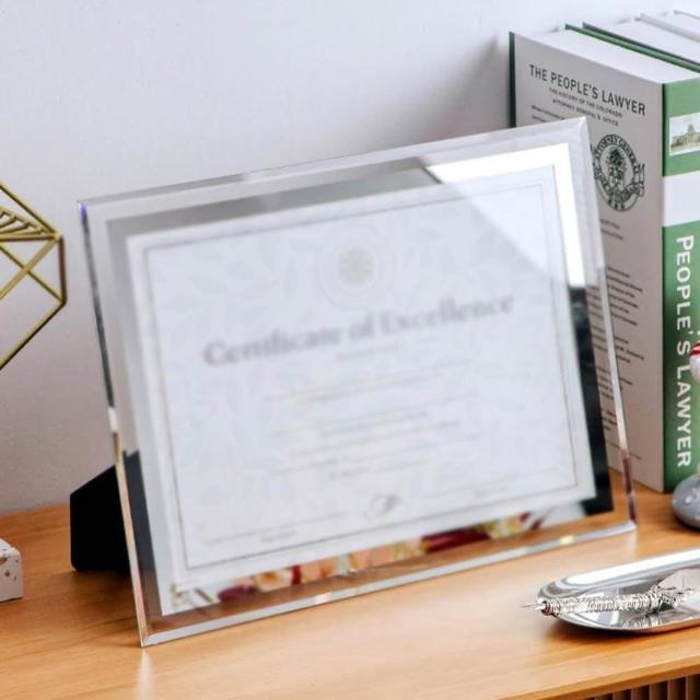 華鴻 水晶玻璃透明擺檯橫豎兩用A4證書相框(獎狀框/展示架/證書框)