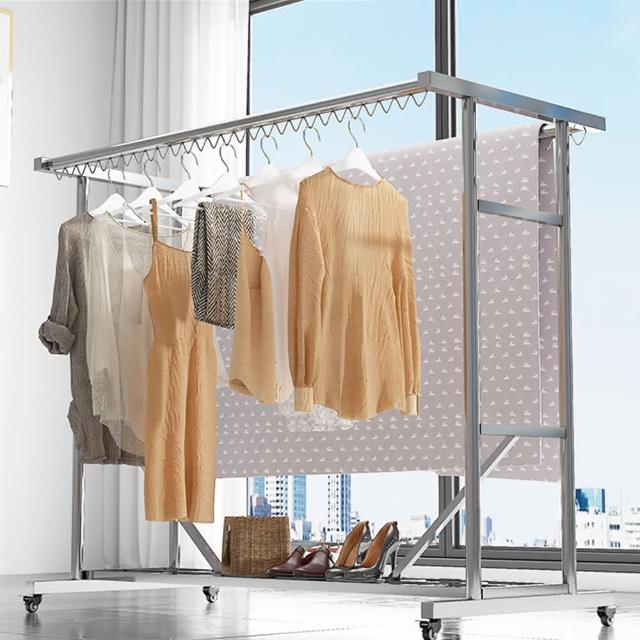 - 加高設計,晾曬衣被長裙不落地