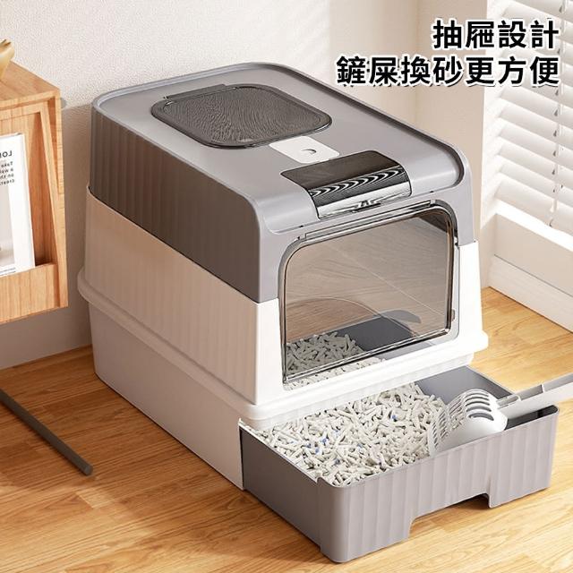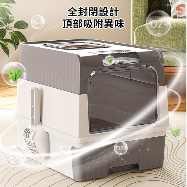 GPN 全封閉式大號防外濺隔臭下進上出加厚抽屜式貓砂盆(貓廁/貓砂屋/貓便盆)