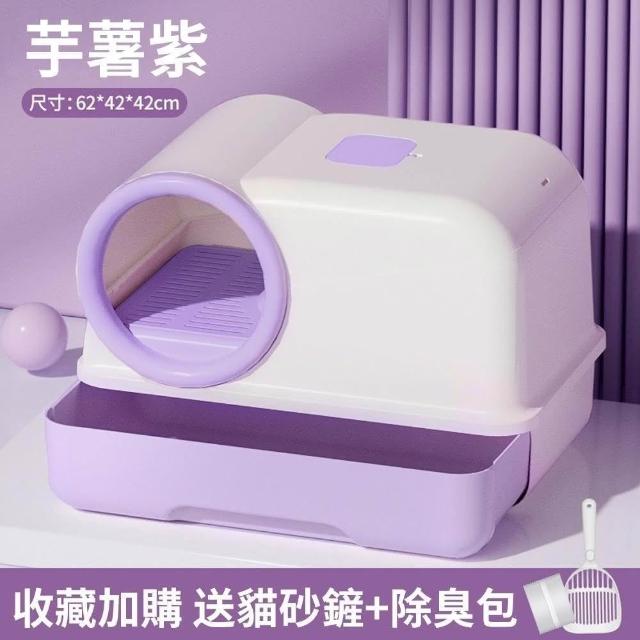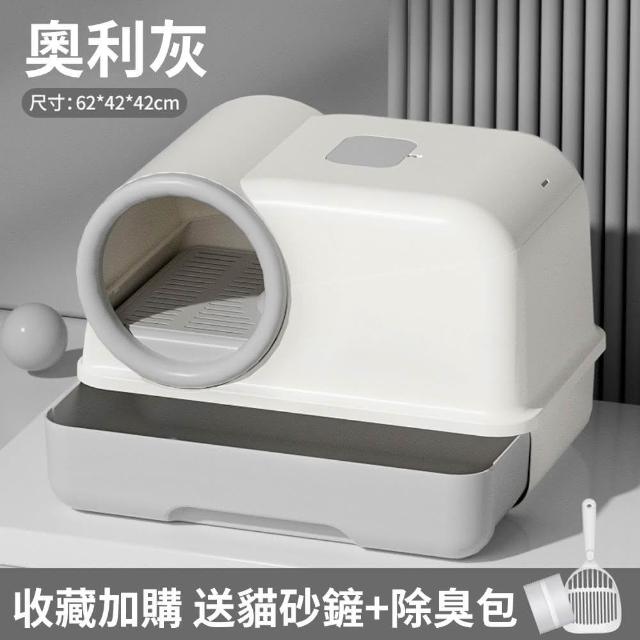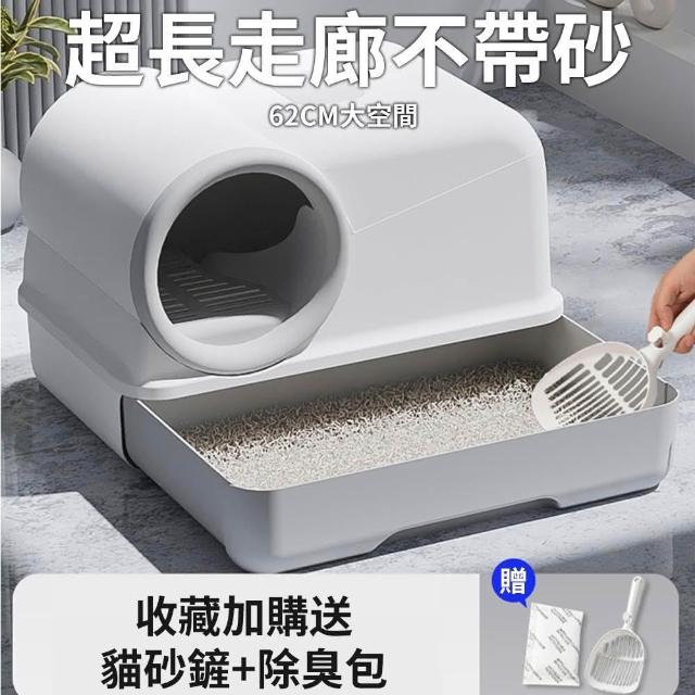 JU JIA JIA 居家家全封閉走廊式貓廁所防外濺隔臭抽屜式超大號貓砂盆(貓廁/貓砂屋/貓便盆)