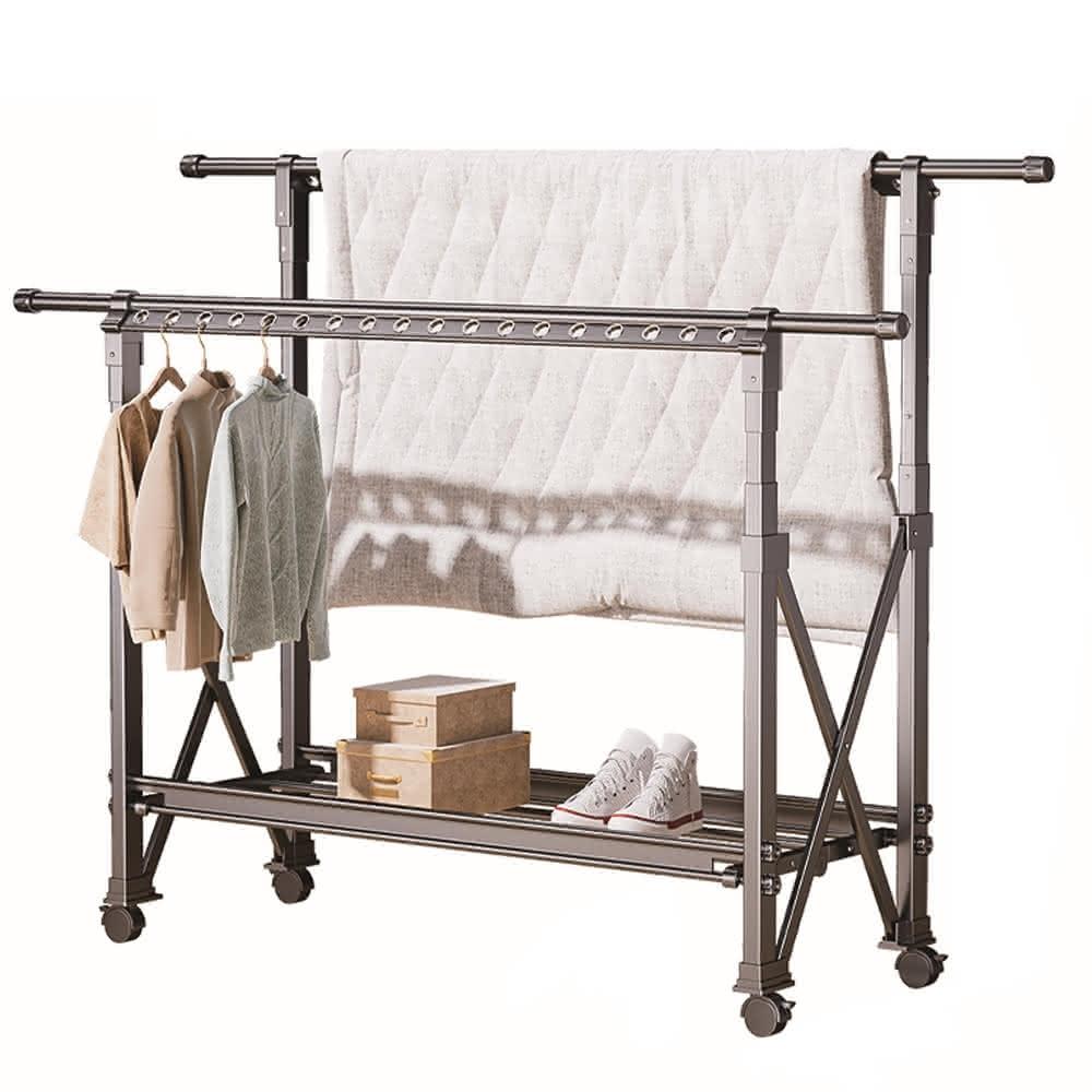 JU JIA JIA 居家家多功能雙桿太空鋁可折疊移動伸縮1.2-2.1米四檔調節晾衣架(晾曬桿/曬衣架/掛衣架/衣架)