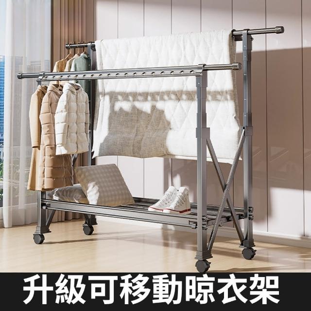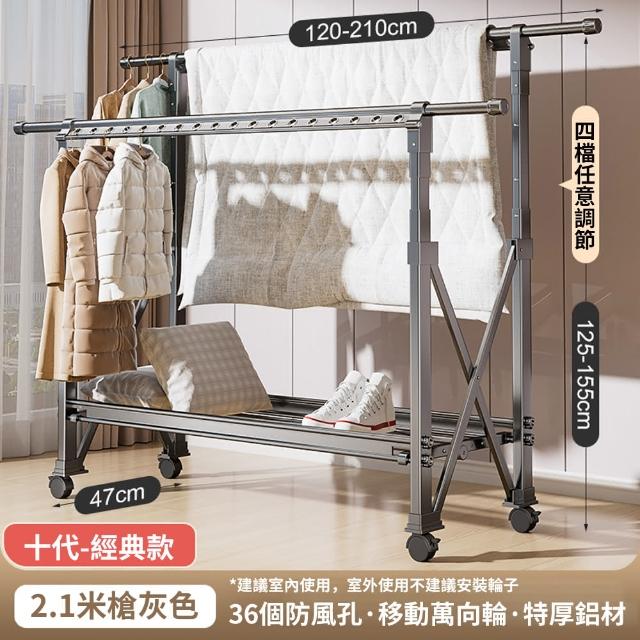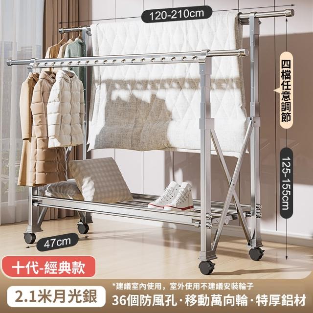 JU JIA JIA 居家家多功能雙桿太空鋁可折疊移動伸縮1.2-2.1米四檔調節晾衣架(晾曬桿/曬衣架/掛衣架/衣架)