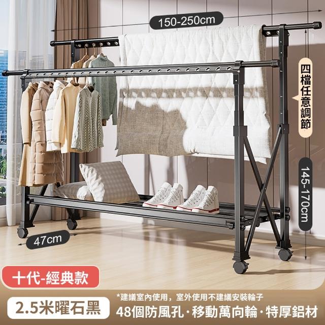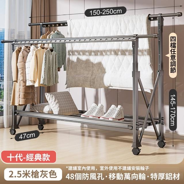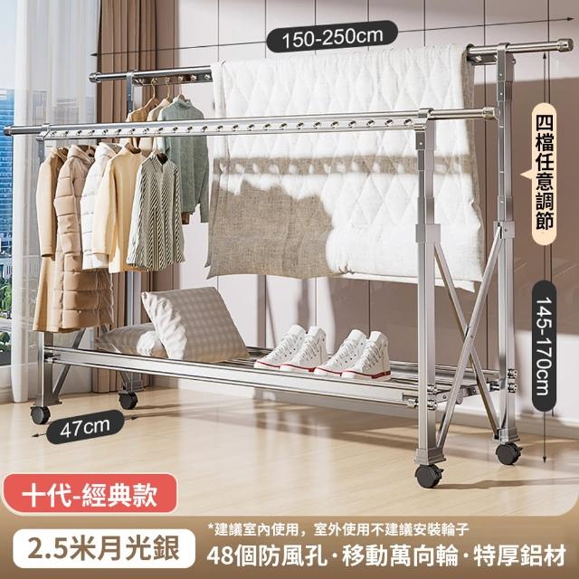 JU JIA JIA 居家家多功能雙桿太空鋁可折疊移動伸縮1.5-2.5米四檔調節晾衣架(晾曬桿/曬衣架/掛衣架/衣架)