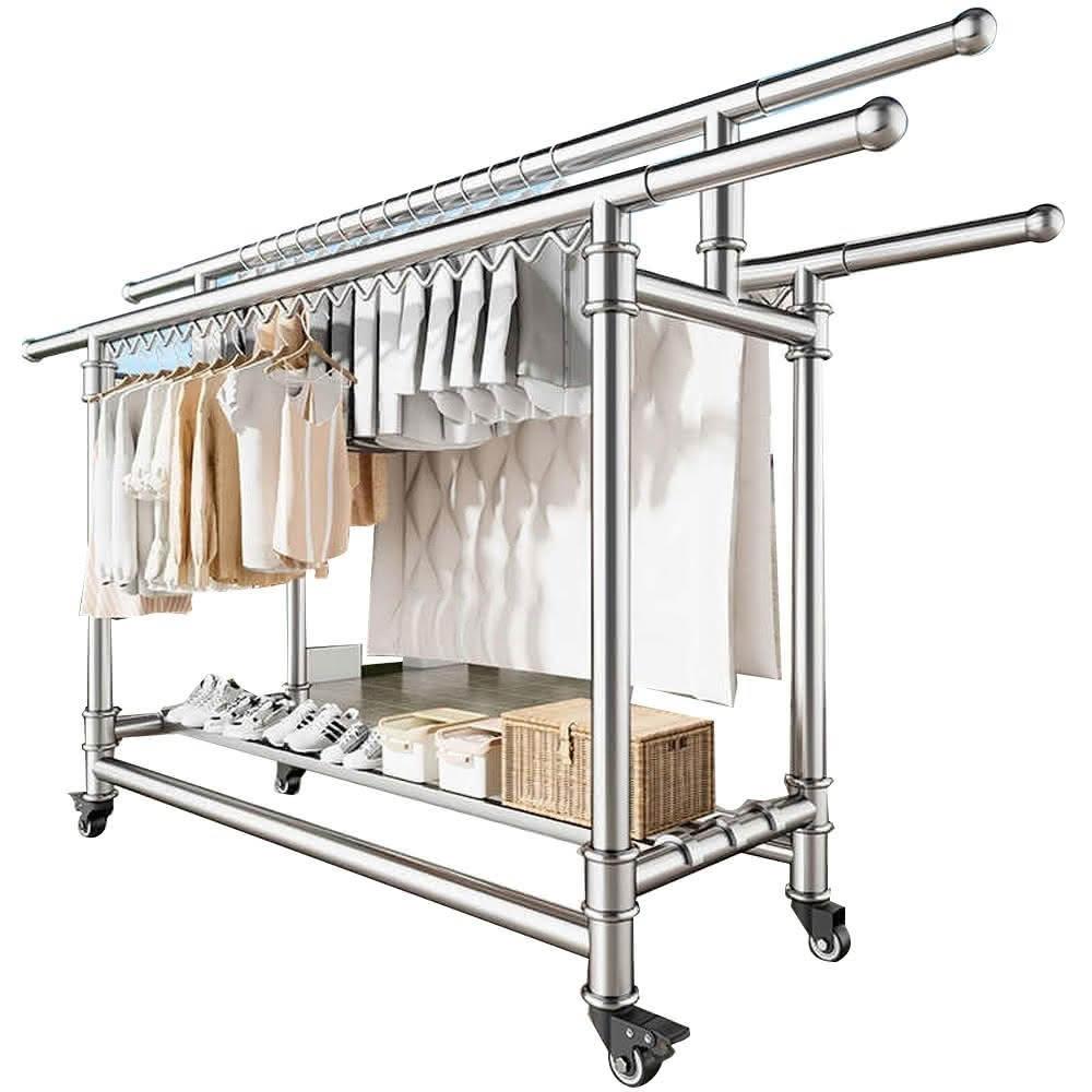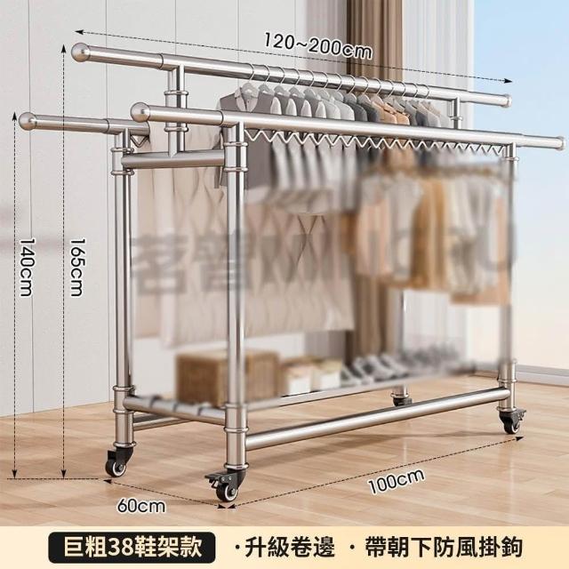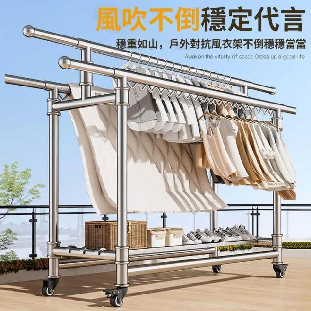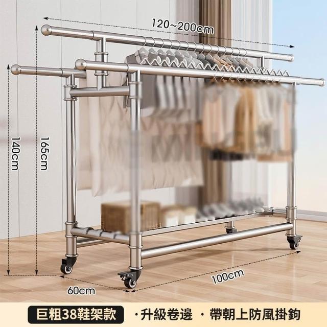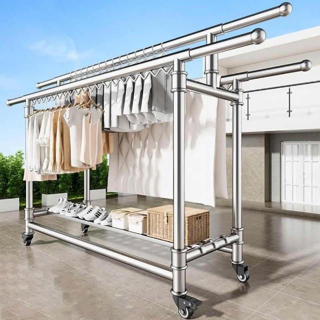 JU JIA JIA 居家家家用陽台可移動伸縮折疊帶鞋架304不鏽鋼三桿落地晾衣架(曬衣架/掛衣架/曬被架/置物架)