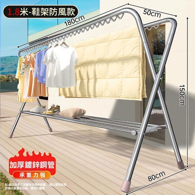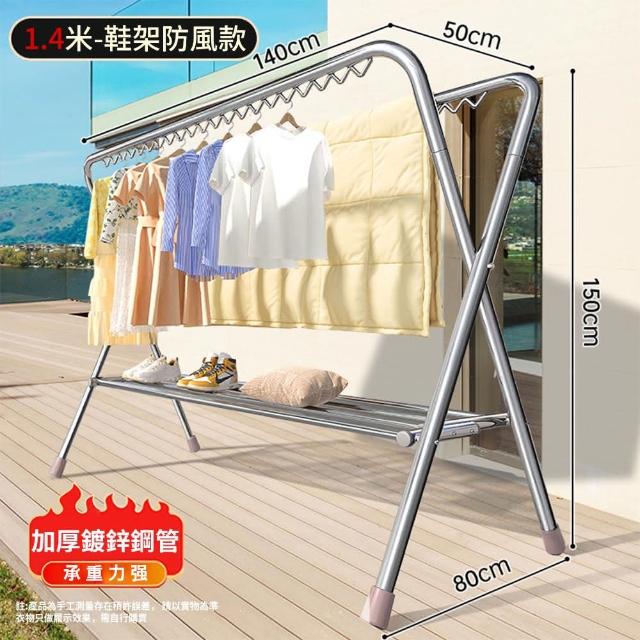JU JIA JIA 居家家室內陽台可折疊加厚鍍鋅管防風X型雙桿落地晾衣架(曬衣架/掛衣架/曬被架/置物架)